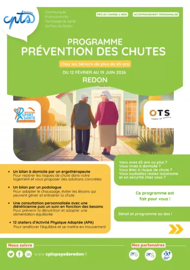La CPTS Pays de Redon propose un programme gratuit de prévention des chutes pour les personnes de 65 ans et plus.